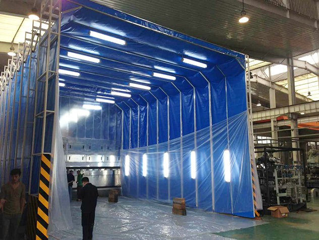 伸縮性噴漆房是一種新型可移動式噴漆房,除具有傳統(tǒng)噴漆房的密閉、通風、除漆霧功能外,該噴漆房還可以拉伸,噴漆的空間可變大變小,有效節(jié)約噴漆時間,特別適用行車吊運場所使用。